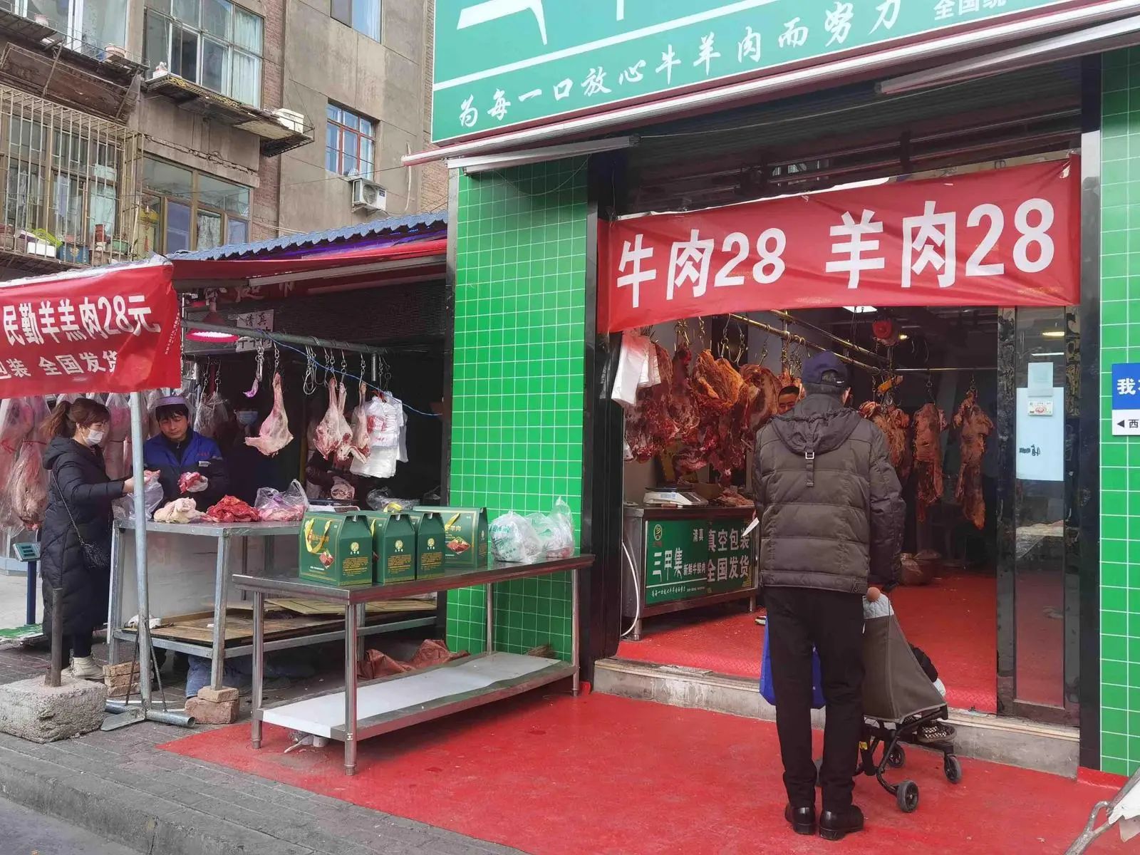 在七里河區(qū)健康路一家菜市場(chǎng),牛肉28、羊肉28的橫幅掛在一家牛羊肉食品店門(mén)前,來(lái)買(mǎi)肉的顧客絡(luò)繹不絕。“今年牛羊肉價(jià)格都便宜,買(mǎi)點(diǎn)羊肉過(guò)年燉湯、做手抓,孩子們回來(lái)愛(ài)吃。”正在挑選羊肉的市民王大爺說(shuō)。