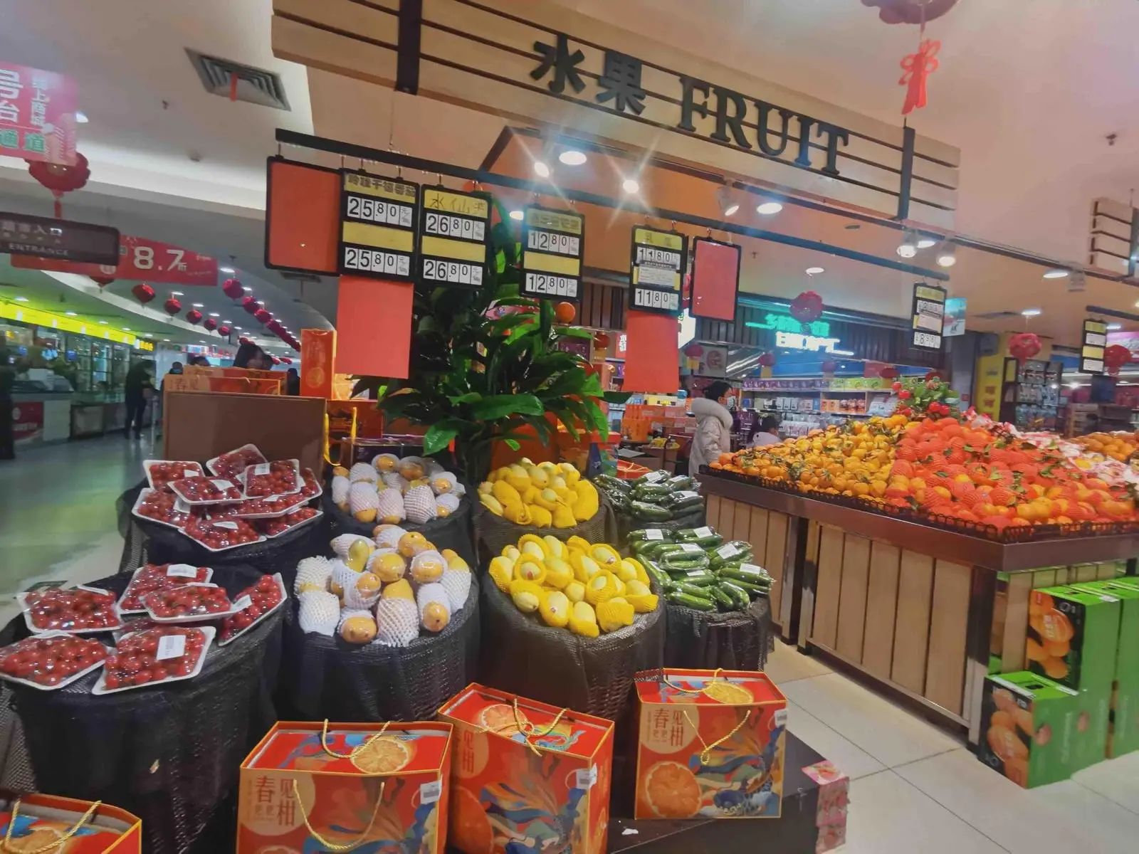 走進(jìn)市內(nèi)各大超市,喜氣洋洋的龍年海報(bào)裝飾了整個(gè)賣(mài)場(chǎng),龍年裝飾品、吉祥物琳瑯滿(mǎn)目,水果、蔬菜、副食、凍品各品類(lèi)齊全,前來(lái)采購(gòu)的市民絡(luò)繹不絕。