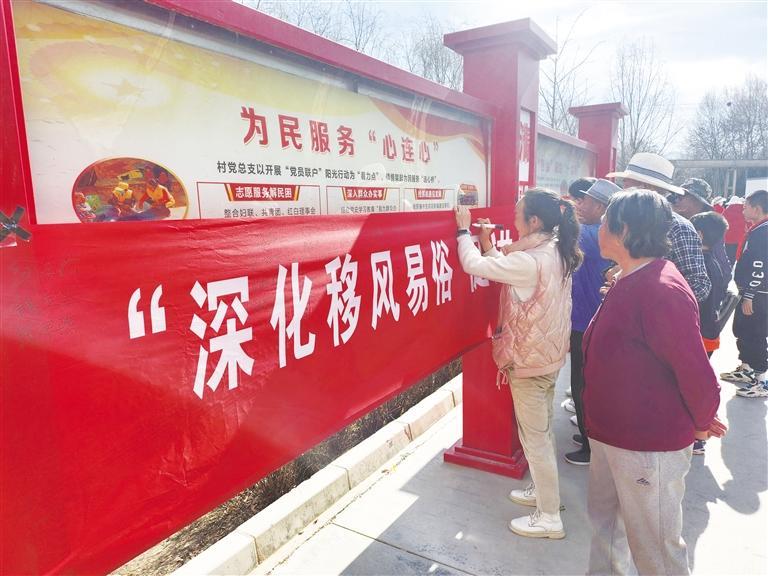 隨后,村民們還通過在活動橫幅上現(xiàn)場集體簽名的方式,紛紛響應活動號召,爭做涵育文明鄉(xiāng)風、良好家風、淳樸民風的踐行者。“隨著移風易俗活動舉辦次數(shù)的增多,我們明顯感受到村里的變化越來越多,大擺宴席的少了,鋪張浪費的也不見了。”榆中縣高墩營村的一位村民表示,“我們愿意從自身做起,在日常生活中積極踐行文明,樹立鄉(xiāng)村文明新風尚。”