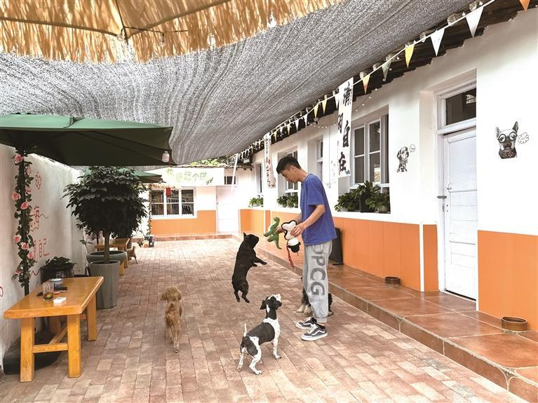 與此同時,還有顧客正帶著愛寵咨詢托管服務,“這里托管環境不錯,比起寵物店,院子更寬敞,小狗活動空間大,還有遮陽網,老板也很有愛心,以后就托管到這里啦!币晃慌繚M意地說道。
