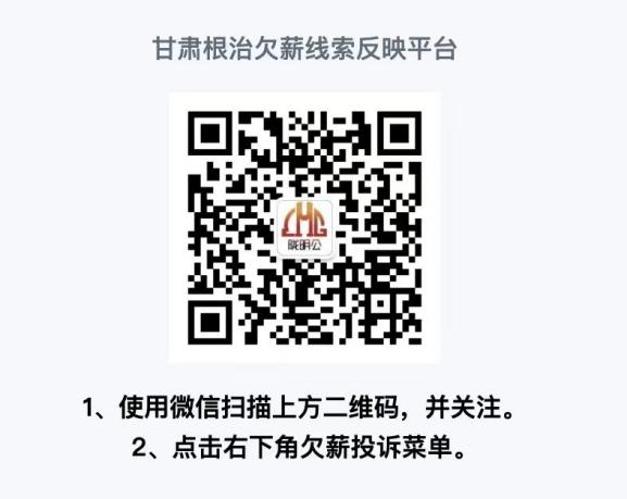 方式二:通過手機掃描二維碼或通過微信搜索“隴明公”公眾號,隨時隨地提交欠薪線索。平臺收到欠薪問題線索后,會自動流轉至欠薪所在地人社部門進行核實處理,并可實時查詢已提交線索辦理的進展情況。(蘭州日報社全媒體記者 趙萬山 陳夢圓)