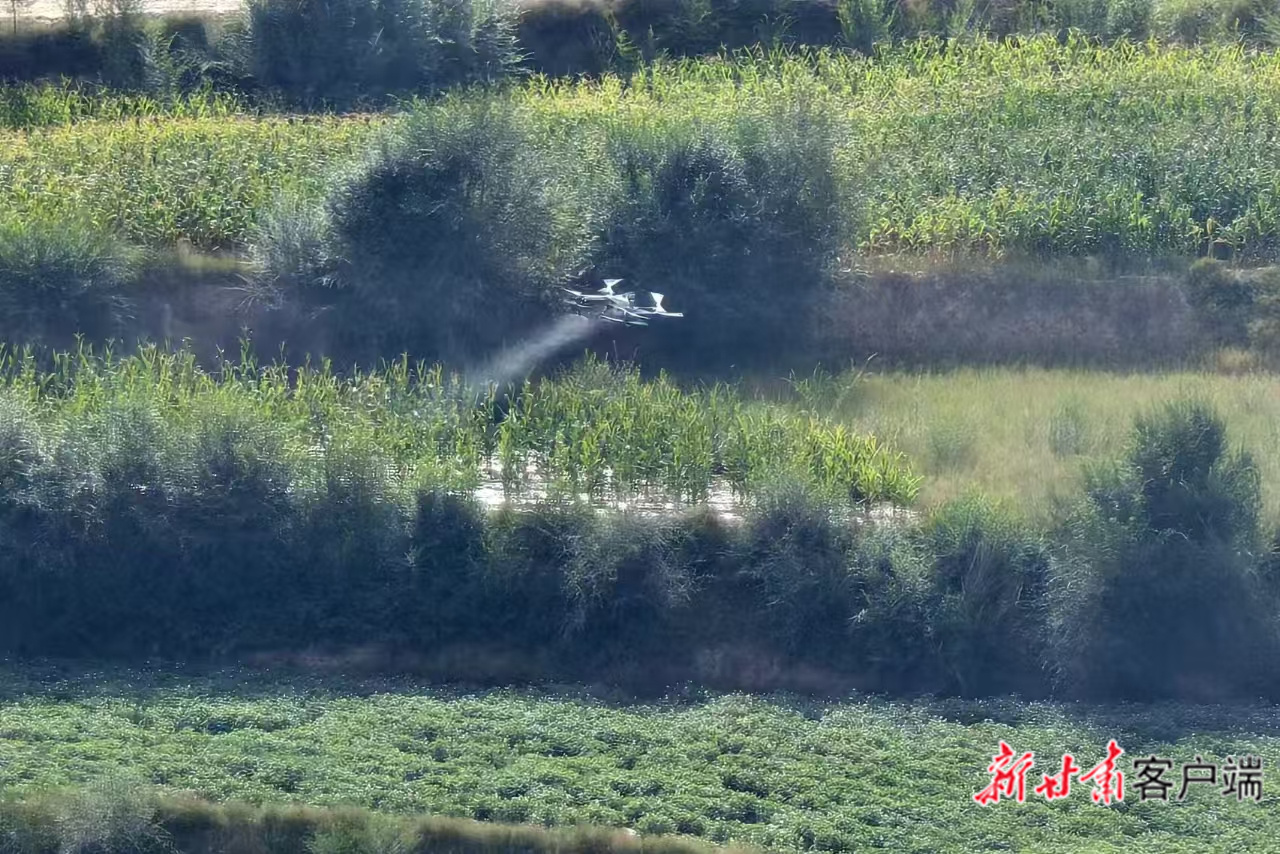 立秋雖過,氣溫不減。時下,走在榆中縣甘草店鎮田間,隨眼可見綠浪翻滾下的玉米、蕎麥長勢正旺。數臺無人機在技術人員操作下穩穩起飛,按照設定的路線進行作業。所到之處,陣陣白霧均勻噴灑在葉子上,為莊稼里的作物送來一場及時的“營養雨”。