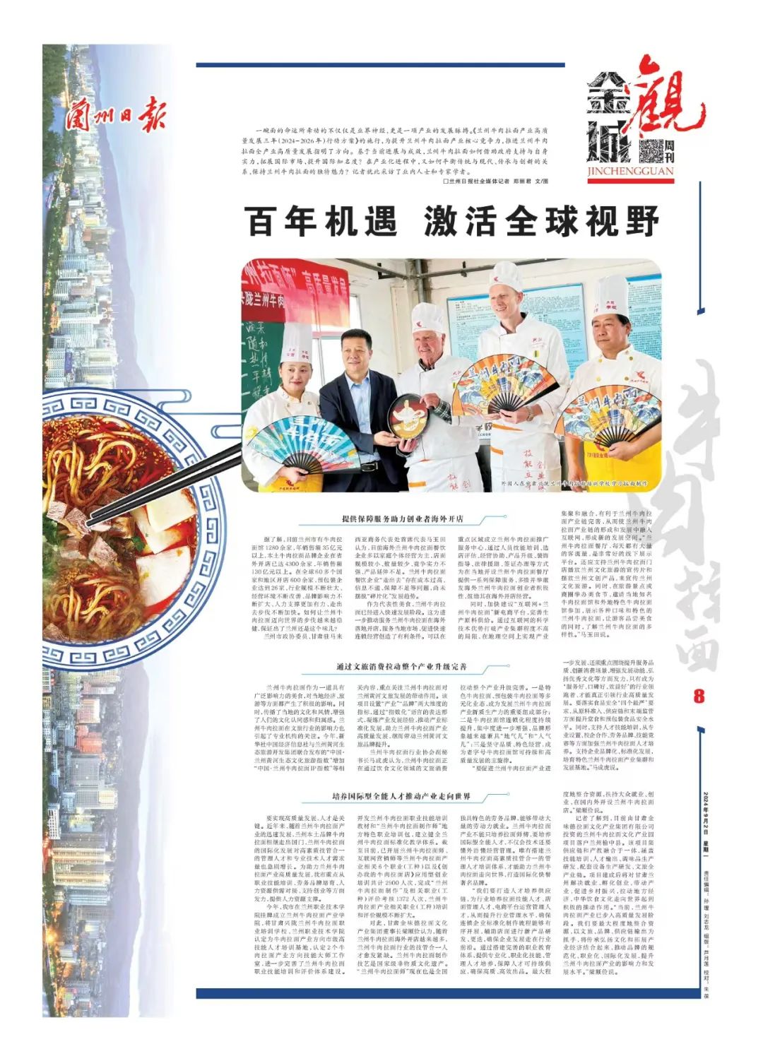 一碗面的命運所牽動的不僅僅是業(yè)界神經(jīng),更是一項產(chǎn)業(yè)的發(fā)展脈搏!短m州牛肉拉面產(chǎn)業(yè)高質(zhì)量發(fā)展三年(2024-2026年)行動方案》的施行,為提升蘭州牛肉拉面產(chǎn)業(yè)核心競爭力,推進(jìn)蘭州牛肉拉面全產(chǎn)業(yè)高質(zhì)量發(fā)展指明了方向;诋(dāng)前進(jìn)展與成效,蘭州牛肉拉面如何借助政府支持與自身實力,拓展國際市場,提升國際知名度?在產(chǎn)業(yè)化進(jìn)程中,又如何平衡傳統(tǒng)與現(xiàn)代、傳承與創(chuàng)新的關(guān)系,保持蘭州牛肉拉面的獨特魅力?記者就此采訪了業(yè)內(nèi)人士和專家學(xué)者。