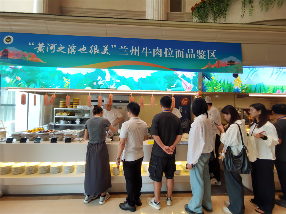 中國蘭州網8月29日消息 “這里有蘭州牛肉拉面,趕緊來一碗嘗嘗!”8月29日,在2024蘭州文旅(西安)招商推介會活動現場,飄香的蘭州牛肉拉面吸引了眾多西安市民排隊品嘗。