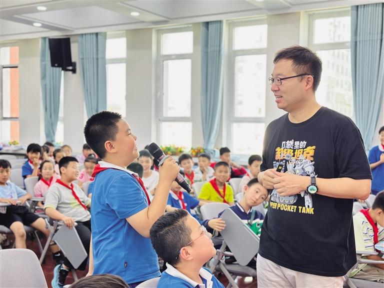 活動(dòng)當(dāng)天,“坦克叔叔”耿溧以生動(dòng)活潑、幽默風(fēng)趣的語言,向同學(xué)們分享了他的暢銷作品《口袋里的超級(jí)坦克》創(chuàng)作背后的故事。在互動(dòng)環(huán)節(jié),同學(xué)們積極踴躍地舉手提問,有的詢問關(guān)于坦克的相關(guān)知識(shí),有的請(qǐng)教寫作過程中遇到的問題,“坦克叔叔”都耐心地一一解答,F(xiàn)場(chǎng)氣氛熱烈非凡,同學(xué)們對(duì)知識(shí)的渴望和對(duì)閱讀的熱情被徹底點(diǎn)燃。