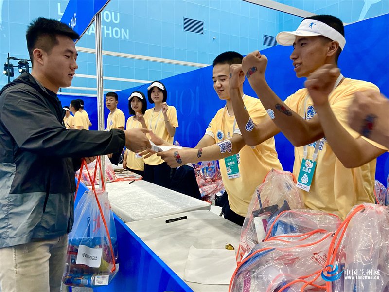 “歡迎來到蘭馬,請出示證件。”來到物資領取入口,參賽選手有序排隊,憑個人身份證打印領取憑證后,在志愿者熱情的歡迎掌聲中,有序進入領物現(xiàn)場,憑小票到對應的窗口領取參賽物資,流程簡單明了,現(xiàn)場井然有序。“很喜歡參賽服,顏色清爽好看,這和咱蘭州一直倡導的綠色、低碳、環(huán)保的生態(tài)理念很契合。志愿者熱情服務,現(xiàn)場熱鬧非凡,給人一種‘走紅毯’的既視感。”一大早就前來領取物資的跑者劉延鋒高興地向記者展示剛剛領取到的參賽物資。記者看到,參賽包中不僅包含參賽必需的參賽服、號碼布,還有消痛貼膏、蘭州牛肉面、牛奶、健力多等實用物品。