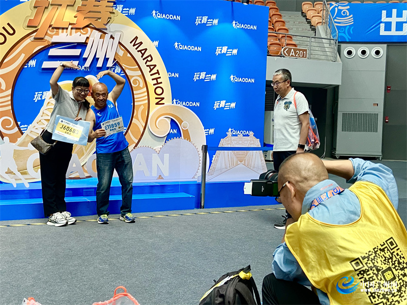 記者注意到,今年各個項目的號碼布采用“蘭州的多巴胺色譜”,即黃河黃、云山藍、玫瑰紅、橄欖綠作為基礎色調(diào)。“這四種顏色代表著蘭州的文化魅力,更蘊含著這座城市如火般的熱情,它以最誠摯的姿態(tài)熱烈歡迎每一位選手的到來。”現(xiàn)場馬拉松工作人員介紹說。